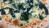 Spinach, broccoli, garlic, mozzarella.